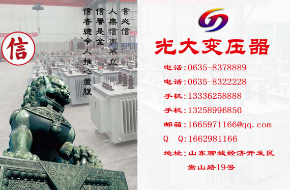 變壓器廠家-光大變壓器制造有限公司隸屬于光大電氣集團,是集團的核心企業之一。年生產變壓器能力1000萬KVA;主導產品有220kV級以下的S11/S13/S20/S22油浸式變壓器、SCB10/SCB11/SCB12/SCB13/SCB14/SCB15/SCB18干式變壓器、高過載變壓器、非晶合金變壓器、光伏發電變壓器、水利發電變壓器、整流變壓器、電爐變壓器、礦用變壓器、較強過載能力電力變壓器、油田用變壓器、高原用變壓器、煤礦用變壓器等30多個系列,1000多種規格,以及非標產品的設計和制造?! 」局饕a品有220kV電壓等級及以下單臺容量240000kVA及以下油浸式電力變壓器、35kV以下干式變壓器、20(10)kV雙電壓等級油浸式、干式變壓器、級科技項目SBH15非晶合金變壓器、35kV及以下的箱變、高低壓開關柜以及單相柱上式油浸變壓器等各類全系列電力變壓器?! ?/p> 查看更多 >